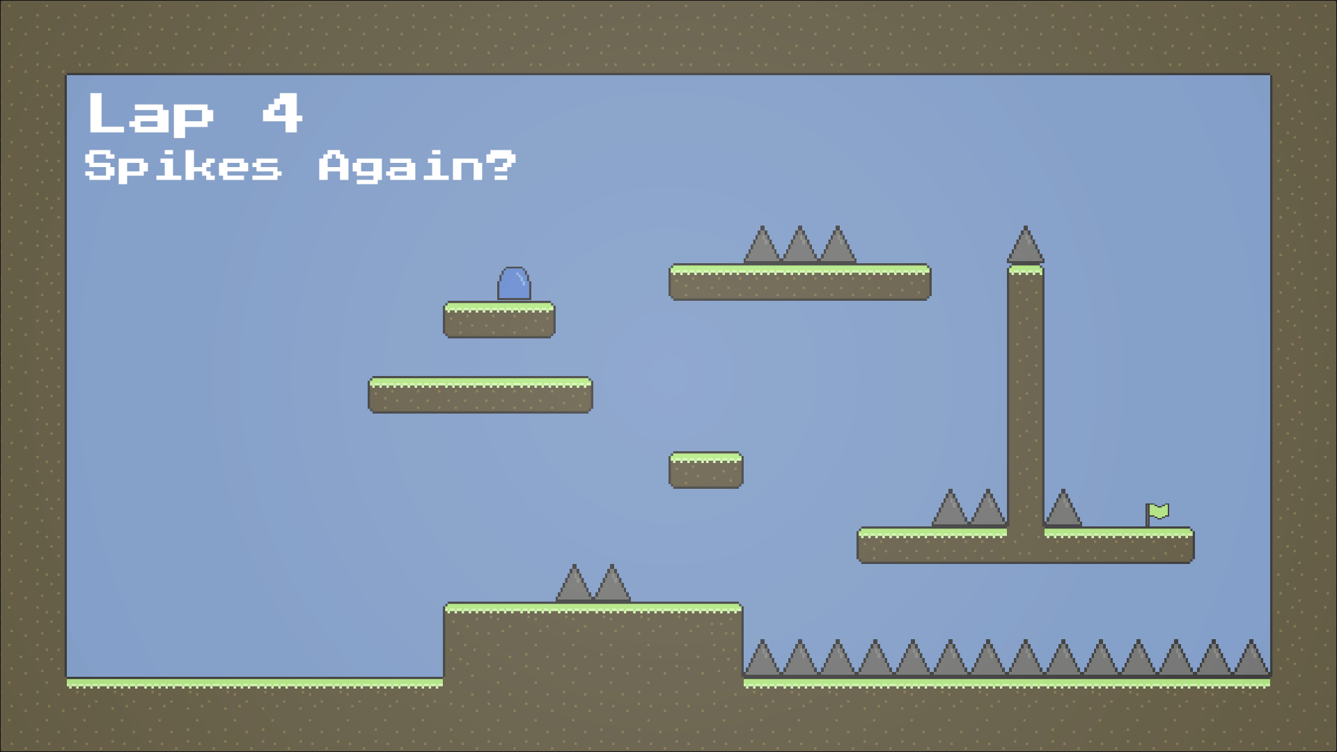 Help little Blue Slime escape his time loop of 10 increasingly difficult laps of the same level. Each lap adds platforms, obstacles and spikes to avoid when making your way to victory.